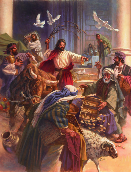“It was nearly time for the Jewish Passover celebration, so Jesus went to Jerusalem. In the Temple area he saw merchants selling cattle, sheep, and doves for sacrifices; he also saw dealers at tables exchanging foreign money. Jesus made a whip from some ropes and chased them all out of the Temple. He drove out the sheep and cattle, scattered the money changers’ coins over the floor, and turned over their tables. Then, going over to the people who sold doves, he told them, “Get these things out of here. Stop turning my Father’s house into a marketplace!” Then his disciples remembered this prophecy from the Scriptures: “Passion for God’s house will consume me.” But the Jewish leaders demanded, “What are you doing? If God gave you authority to do this, show us a miraculous sign to prove it.” “All right,” Jesus replied. “Destroy this temple, and in three days I will raise it up.” “What!” they exclaimed. “It has taken forty-six years to build this Temple, and you can rebuild it in three days?” But when Jesus said “this temple,” he meant his own body. After he was raised from the dead, his disciples remembered he had said this, and they believed both the Scriptures and what Jesus had said.”